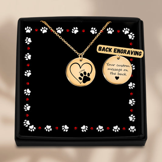 Heart Paw Print Coin Medallion Necklace - Pet Lover Gift - Engraved Jewelry - Animal Lover Pendant - Dog Mom Necklace - Cat Lover Gift