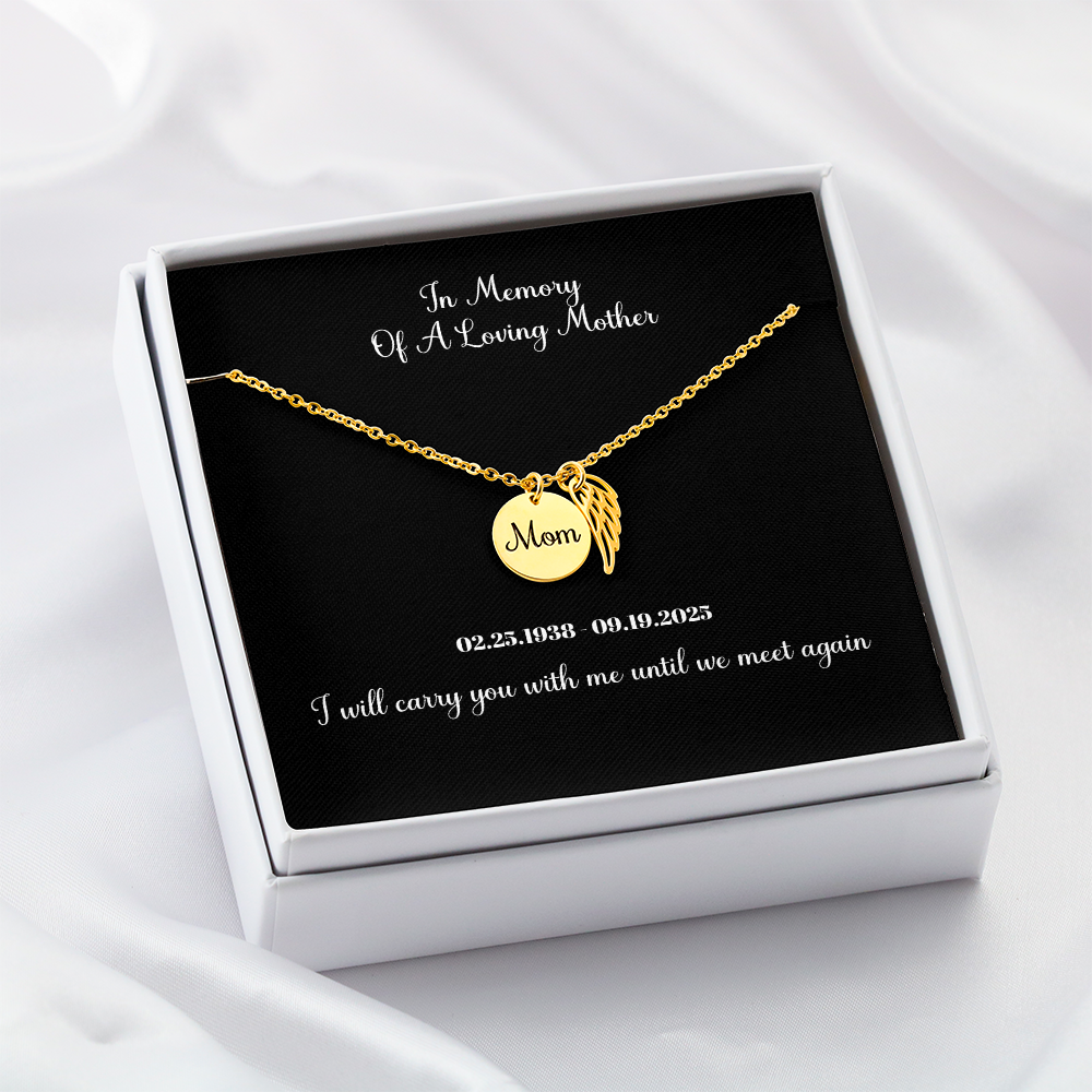 Memorial Necklace Mom, Angel Wing Charm , Sympathy Pendant, Bereavement Gift For Son Or Daughter